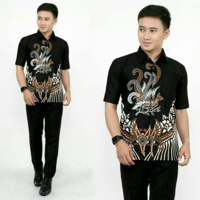Diskon Pakaian di Kabupaten Boalemo Ayam Nirwana Kemeja Batik Pria Lengan Pendek Hitam Sogan M L Xl dari Kulakan Kemeja Batik Kota Pekalongan